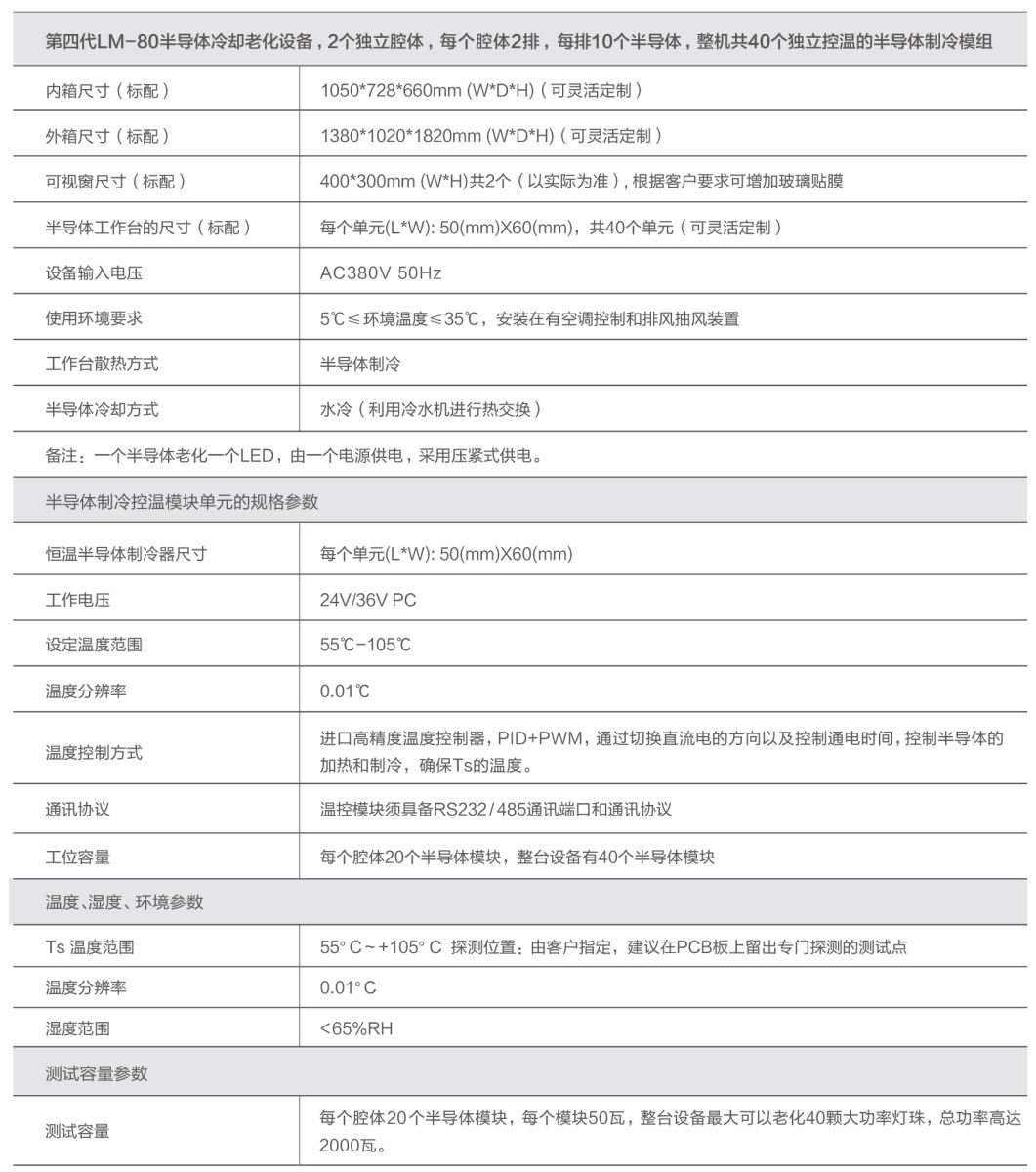 具备高可靠性、寿命长、高精准、高稳定性和易操作,可以测试小功率到大功率的全系列产品,最多可支持几千颗的小功率LED灯珠同时测试。